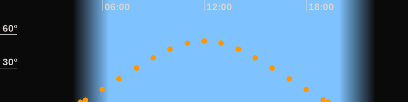 Höchster Stand (Kulmination)12:00 Uhr (h = 54°)