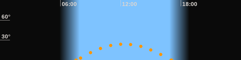 Höchster Stand (Kulmination)12:21 Uhr (h = 24.3°)