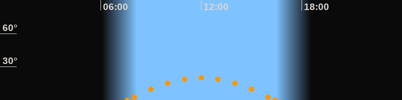 Aufgang07:36 Uhr im Südosten (αAz = 120°)