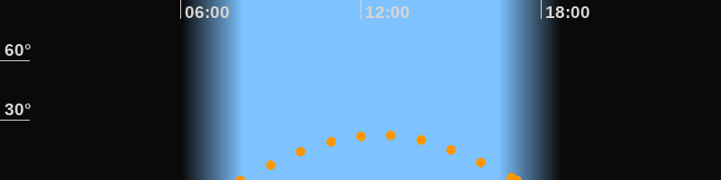 Höchster Stand (Kulmination)12:38 Uhr (h = 22.6°)