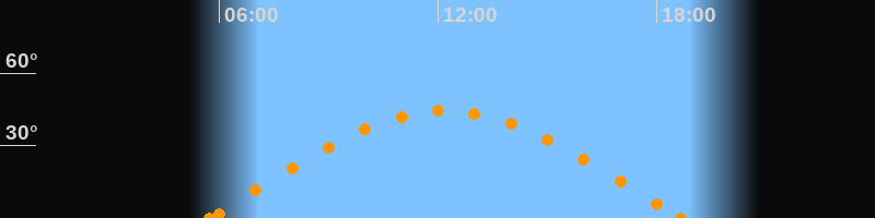 Höchster Stand (Kulmination)12:11 Uhr (h = 44.6°)