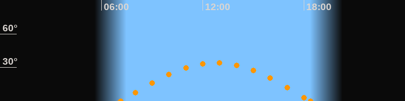 Höchster Stand (Kulmination)12:45 Uhr (h = 34.4°)