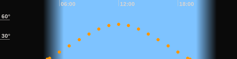 Höchster Stand (Kulmination)12:00 Uhr (h = 53.3°)