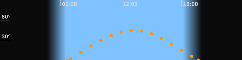 Höchster Stand (Kulmination)13:11 Uhr (h = 44.8°)