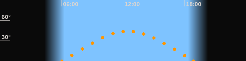 Höchster Stand (Kulmination)12:27 Uhr (h = 43.9°)
