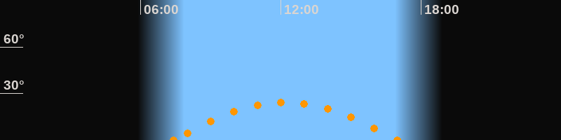 Höchster Stand (Kulmination)12:14 Uhr (h = 24.5°)