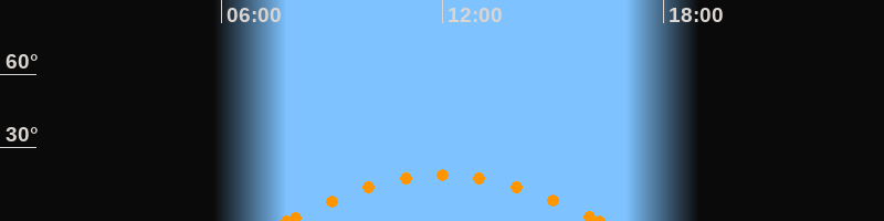 Höchster Stand (Kulmination)12:00 Uhr (h = 18.7°)