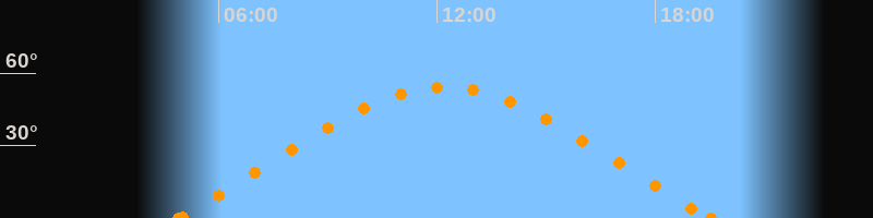 Höchster Stand (Kulmination)12:12 Uhr (h = 54.1°)