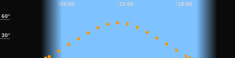 Höchster Stand (Kulmination)12:00 Uhr (h = 55°)
