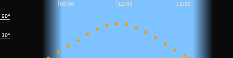 Höchster Stand (Kulmination)12:09 Uhr (h = 53.8°)