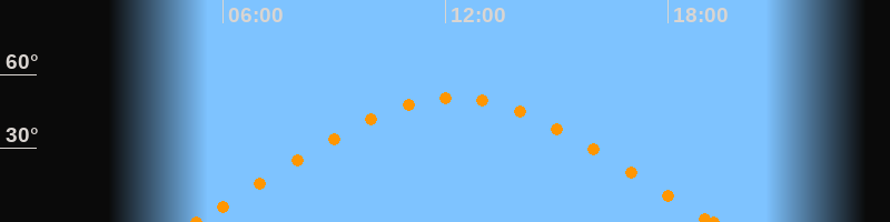 Untergang19:12 Uhr im Westen (αAz = 288.4°)