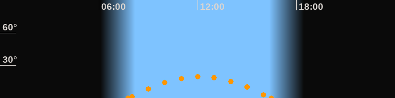 Höchster Stand (Kulmination)12:05 Uhr (h = 19.7°)