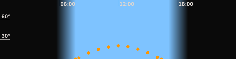 Höchster Stand (Kulmination)12:05 Uhr (h = 20.2°)