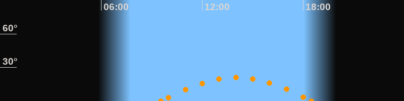 Untergang18:30 Uhr im Südwesten (αAz = 240.8°)