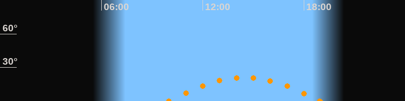 Aufgang09:58 Uhr im Südosten (αAz = 118.8°)