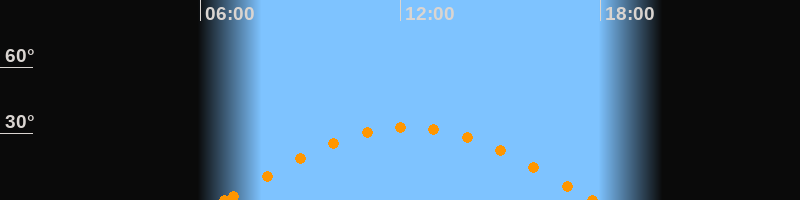 Höchster Stand (Kulmination)12:13 Uhr (h = 33°)