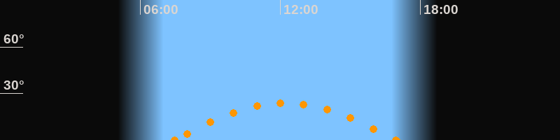 Höchster Stand (Kulmination)12:11 Uhr (h = 24°)