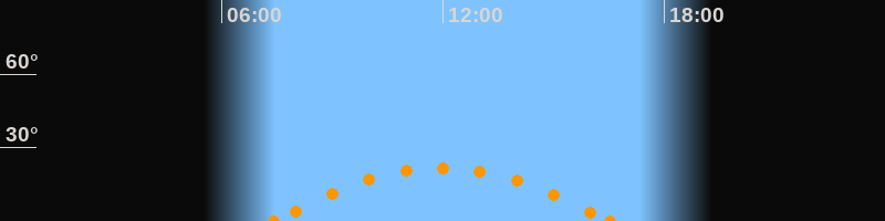 Höchster Stand (Kulmination)11:56 Uhr (h = 21.7°)