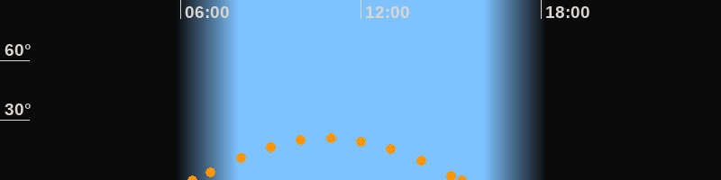 Aufgang06:22 Uhr im Südosten (αAz = 118.6°)