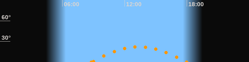 Höchster Stand (Kulmination)13:23 Uhr (h = 22.3°)