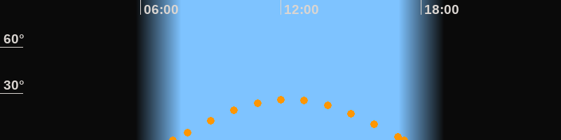 Höchster Stand (Kulmination)12:20 Uhr (h = 26.2°)