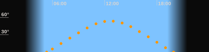 Höchster Stand (Kulmination)12:33 Uhr (h = 53.5°)