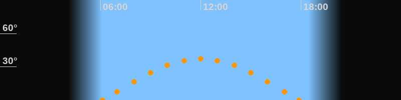 Höchster Stand (Kulmination)12:00 Uhr (h = 37.3°)