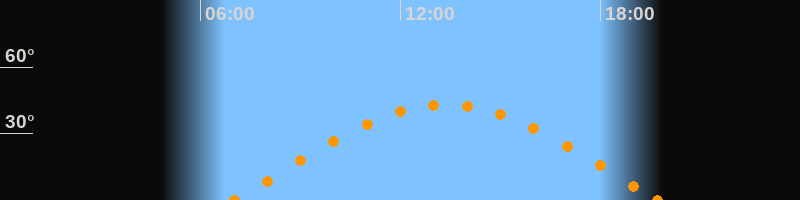 Höchster Stand (Kulmination)13:22 Uhr (h = 43°)