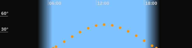 Höchster Stand (Kulmination)13:05 Uhr (h = 44.3°)