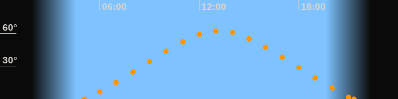 Höchster Stand (Kulmination)13:08 Uhr (h = 61.9°)