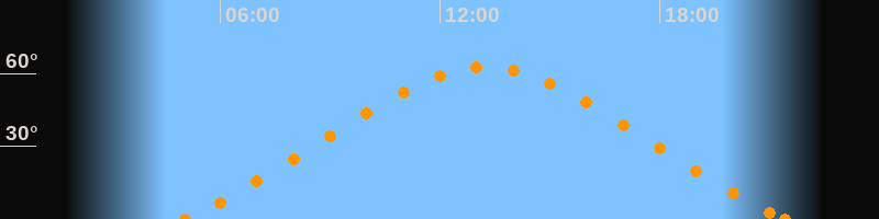 Höchster Stand (Kulmination)13:15 Uhr (h = 62.8°)