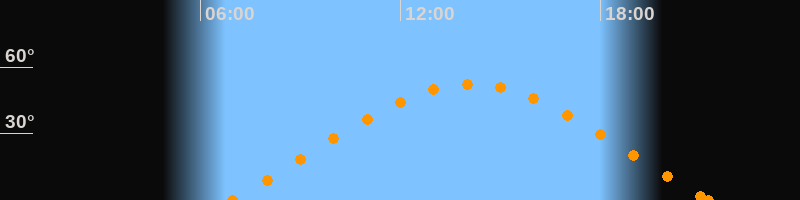 Höchster Stand (Kulmination)14:06 Uhr (h = 52.3°)