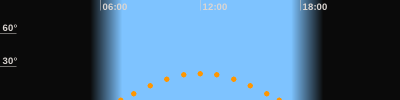 Höchster Stand (Kulmination)12:00 Uhr (h = 24.1°)