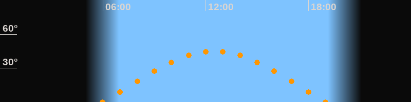 Höchster Stand (Kulmination)12:30 Uhr (h = 45°)