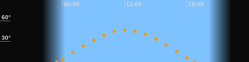 Höchster Stand (Kulmination)12:06 Uhr (h = 46.4°)