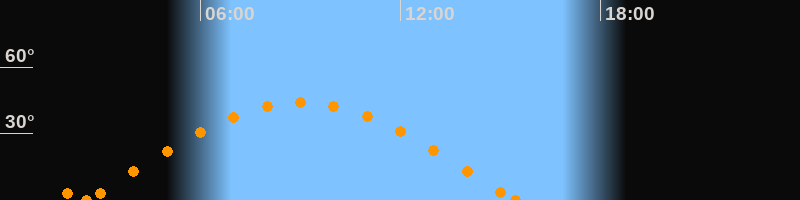 Höchster Stand (Kulmination)09:01 Uhr (h = 44.1°)