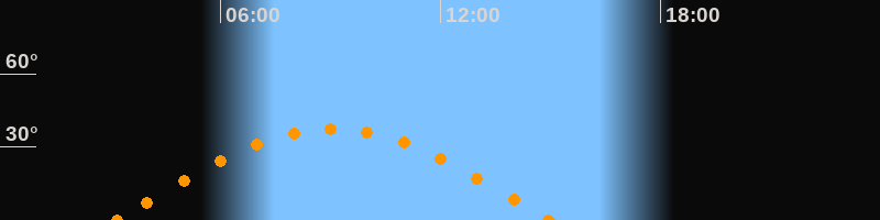 Höchster Stand (Kulmination)09:02 Uhr (h = 37.5°)