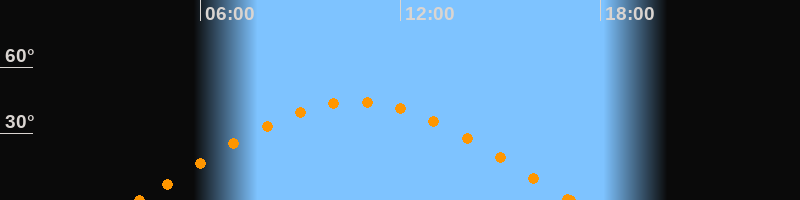 Höchster Stand (Kulmination)10:38 Uhr (h = 44.3°)
