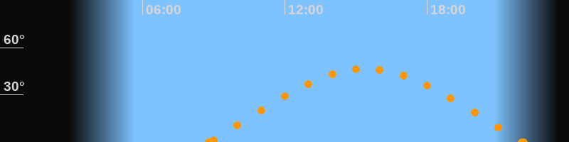 Höchster Stand (Kulmination)15:25 Uhr (h = 46.6°)
