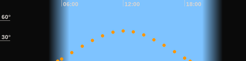 Höchster Stand (Kulmination)12:05 Uhr (h = 44.6°)