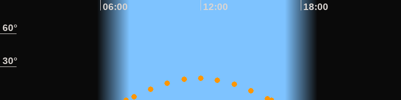 Aufgang07:30 Uhr im Südosten (αAz = 121.4°)
