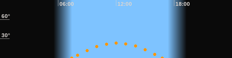 Höchster Stand (Kulmination)12:03 Uhr (h = 23.2°)