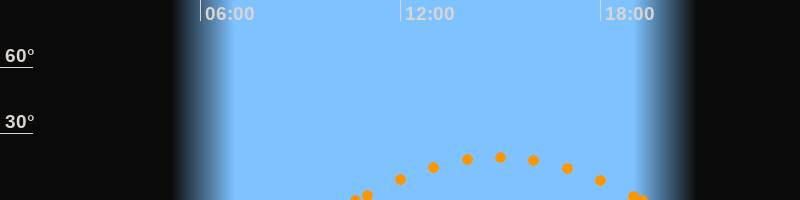 Untergang19:16 Uhr im Südwesten (αAz = 238.3°)