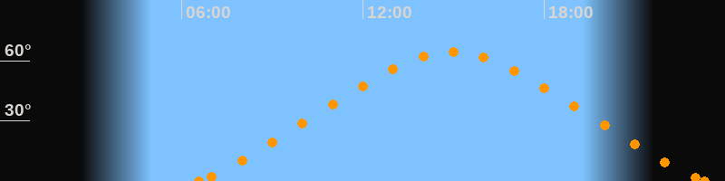 Höchster Stand (Kulmination)14:59 Uhr (h = 64.3°)