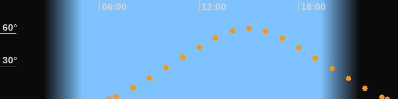 Höchster Stand (Kulmination)15:00 Uhr (h = 64.4°)