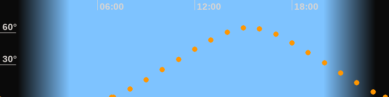 Höchster Stand (Kulmination)15:21 Uhr (h = 64.8°)