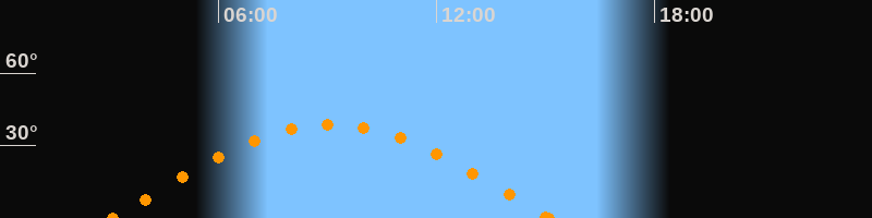 Höchster Stand (Kulmination)09:05 Uhr (h = 38.6°)
