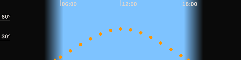 Höchster Stand (Kulmination)12:06 Uhr (h = 46.7°)