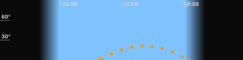 Aufgang09:42 Uhr im Südosten (αAz = 118.5°)