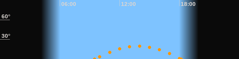 Untergang18:11 Uhr im Südwesten (αAz = 239°)